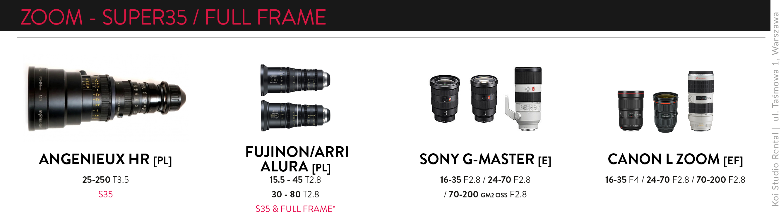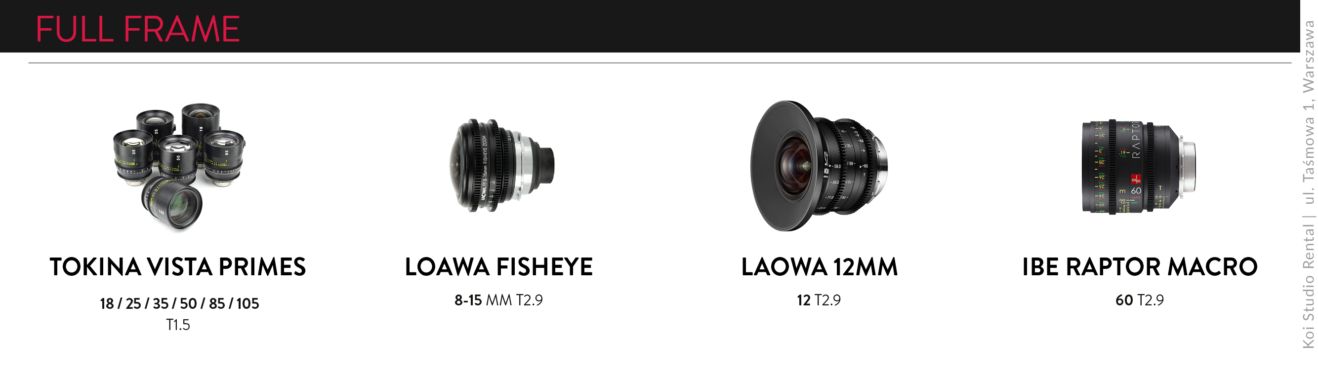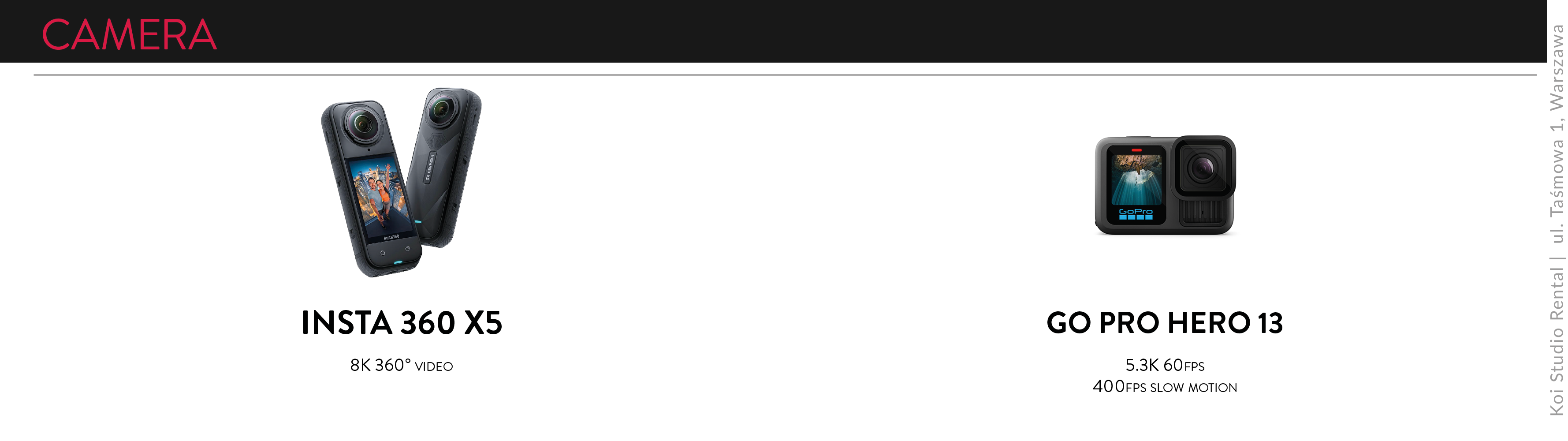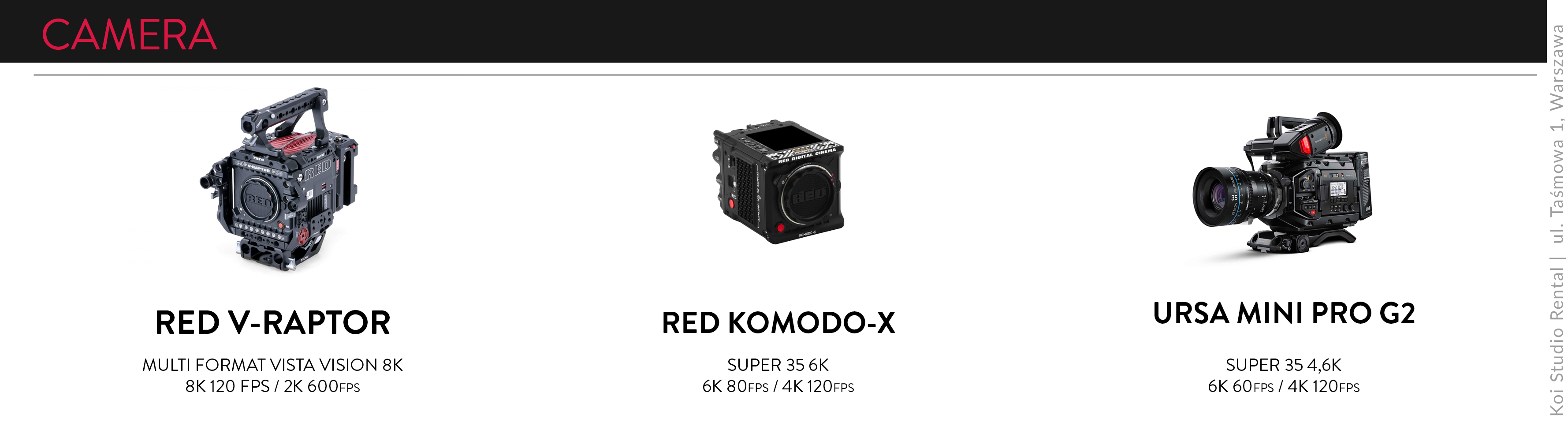 contact ORDERS +48 535 714 902 WAREHOUSE +48 535 166 965RENTAL@KOI-STUDIO.PL10:00-18:00 Possibility to collect and return equipment 24/7 by prior arrangement. Facebook Instagram Vimeo